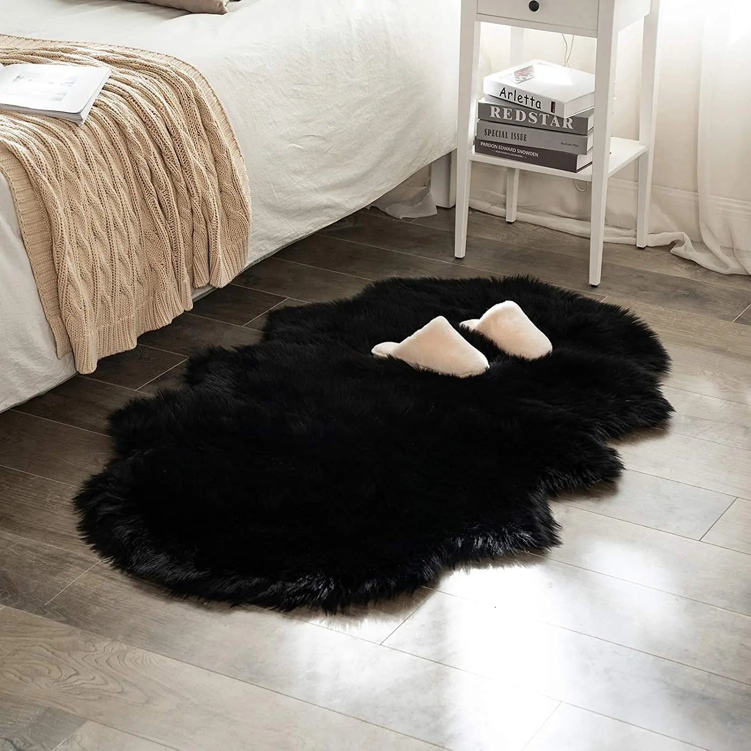Soft Sheepskin Bedroom Carpet Imitation Wool Pad Long Hair Bedside Rugs Sofa Cushion Rugs Living Room Fluffy Hairy Fur Carpet